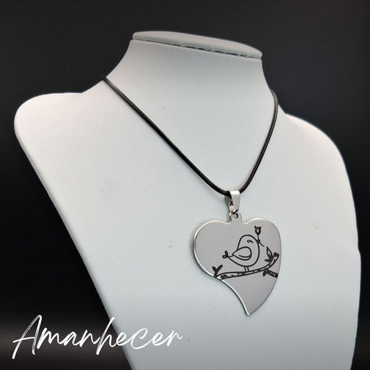 Pendentes coração, gravados a laser, em aço inoxidável, com fio
