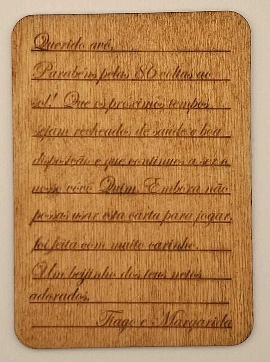 Postal em madeira (imagem e texto)