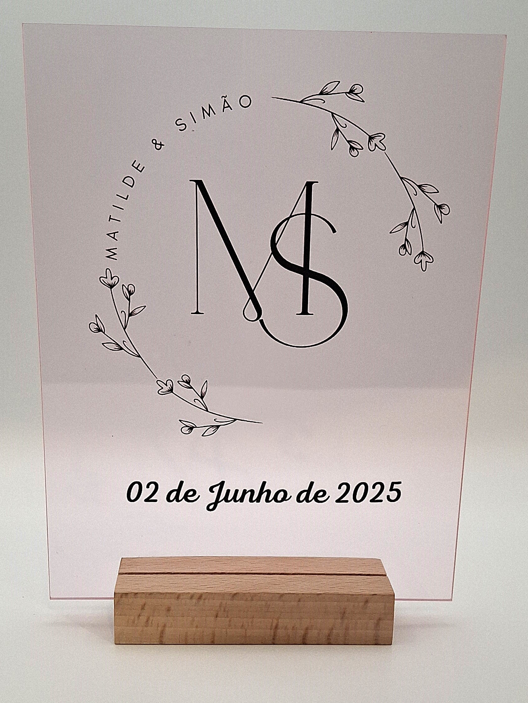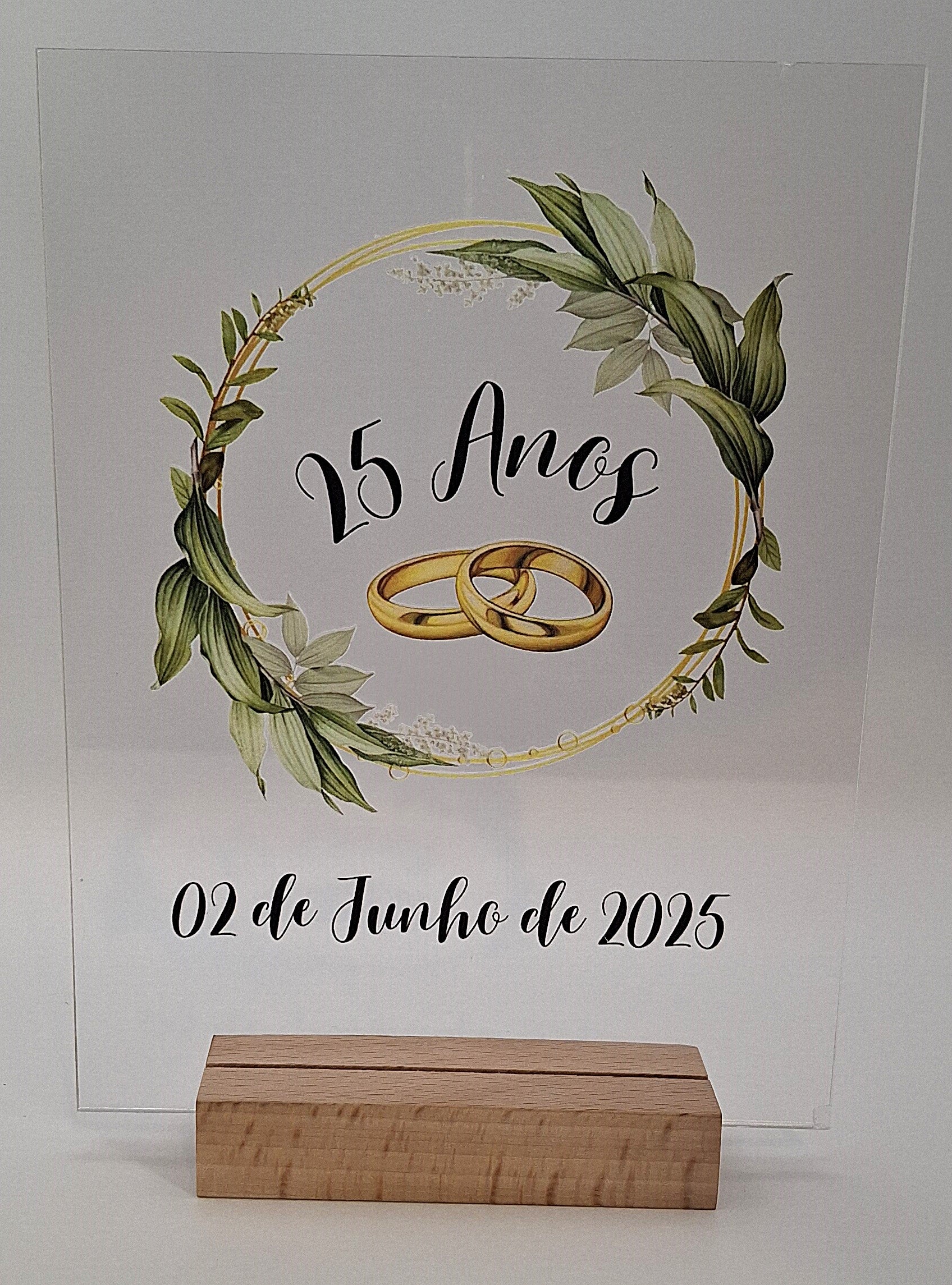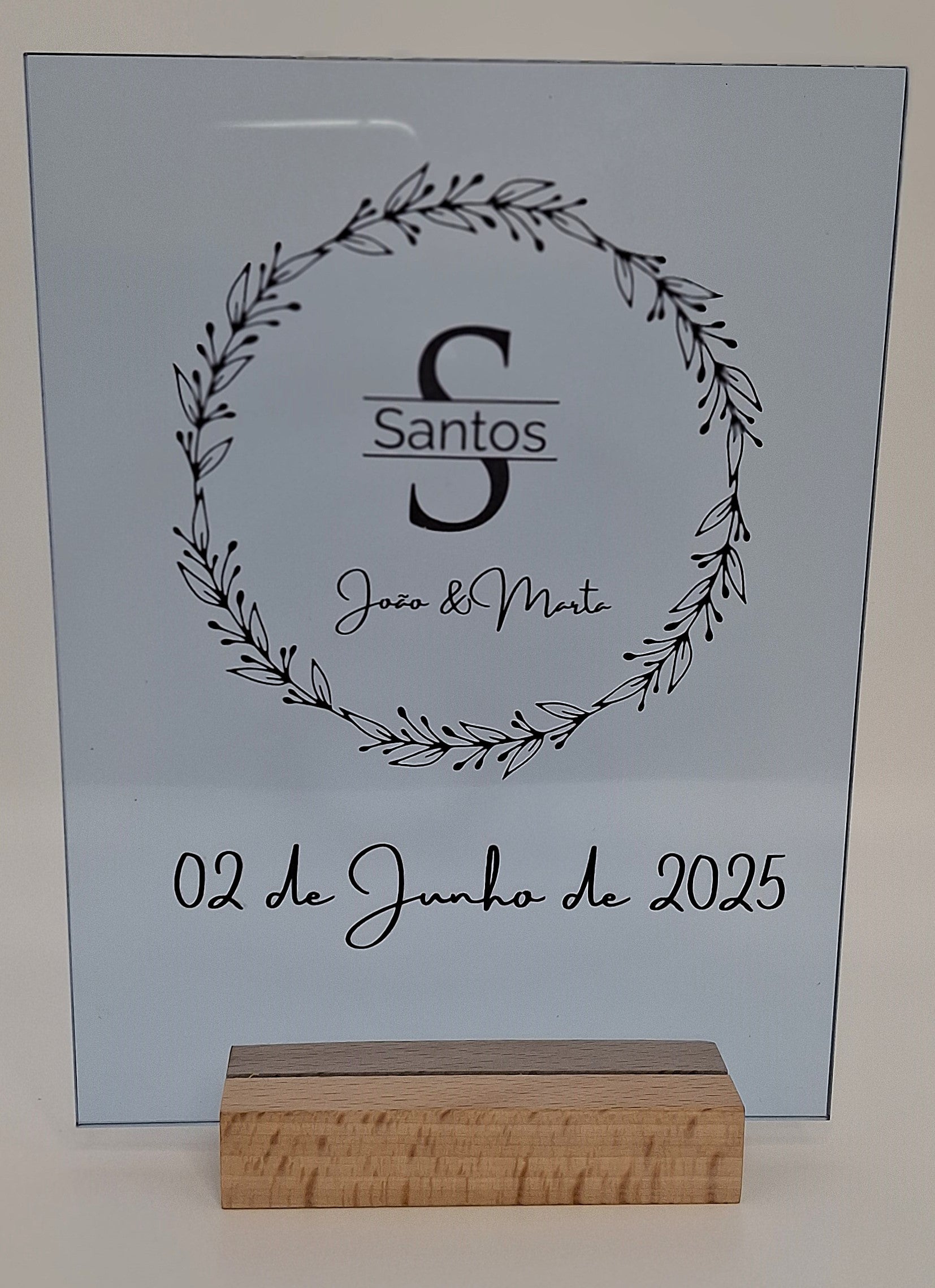 Painéis A5 comemorativos ou informativos em acrílico, com base madeira sem iluminação
